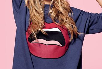 Imaginée pour la fête des amoureux, la collection a été dessinée autour de la bouche rouge vif iconique de l’artiste. La collection a été baptisée « just a kiss ». La bouche est déclinée sur un sweatshirt, deux petites culottes et un soutient gorge triangle.