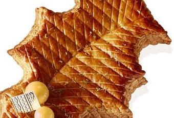 La maison Fauchon présente la Galette Houx Là Là. La galette Houx là là est composée d’un feuilletage au beurre des Charentes, d’une compotée aux pommes, de zestes de citron vert et, sur le dessus, deux petites sphères en pâte d’amande.