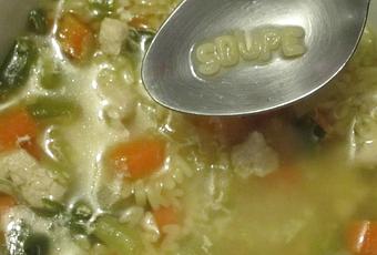 Cuire les légumes et le poulet dans le bouillon une quinzaine de minutes puis en fin de cuisson ajouter les pâtes et cuire 2-3 minutes.