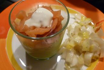 Une idée de verrine pour les fêtes………………… !!!! très simple mais qui remporte toujours un franc succès… Une belle fraicheur..