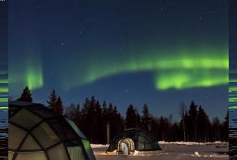 L’hôtel Kakslauttanen situé dans la région de Saariselkä Fell, en Laponie finlandaise propose de passer la nuit dans un Igloo. Les igloos peuvent accueillir deux personnes, avec possibilité d’ajouter un lit. les igloos en verre thermique disposent d’un sauna privé, d’une cheminée, d’une kitchenette et d’une chambre avec un toit en verre. Les douches sont disponibles dans un bâtiment indépendant.
