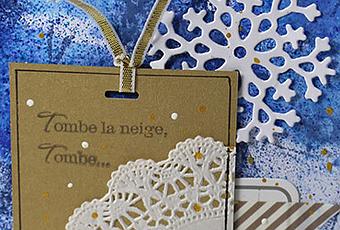 Pour le concours gagnant de Décembre/Janvier sur le forum A vos cartes ! Christelle pour l’épreuve 1, nous demandait de planter le décor. Il fallait créer le fond de notre carte et pour corser un peu les choses utiliser un combo : bleu, blanc, doré.