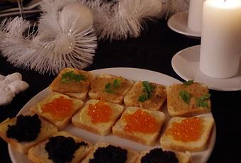 J'en avais fais avec des oeufs de lumpe, des oeufs de saumon, des rillettes de crevettes & olives ainsi qu'une tranche de foie gras et sa confiture de Noêl en accompagnement.
