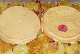 15/ Couper le reblochon en deux dans le sens de la largeur .