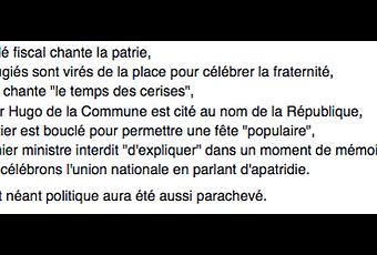 Quand Johnny, l'armée et la caste politique rendent hommage à Charlie Hebdo, le "peuple" de France est étrangement aux abonnés absents. Comme on connaît son Lagarde et Michard, on convoque son Hugo tandis que par derrière on fourbit une artillerie antirépublicaine. C'est du pompidolisme de gauche, enfin, de gauche...