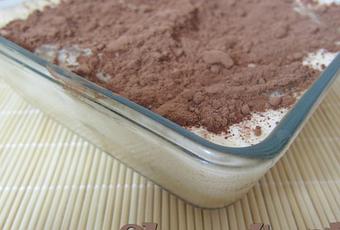 Tremper rapidement les biscuits dans du café, les aligner dans le fond de chaque ramequin ou d'un grand plat en pyrex. Recouvrir d'une couche de crème. Recommencer l'opération pour alterner ainsi 3 à 4 couches de crème et de biscuits. Finir par une couche de crème et saupoudrer généreusement de cacao en poudre.