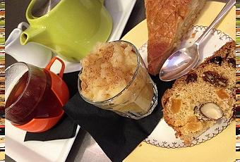 C'est nouveau et ça va plaire à tous ceux qui aiment picorer ! Cette année, le thé se fait gourmand et s'accompagne de deux petits morceaux de gâteau du moment (ici la galette des rois et le cake de Noël) ainsi qu'une petite verrine (ici compote de pommes aux épices).
