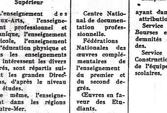 Dans l’exposition organisée pour le cinquantenaire de l’assassinat de Jean Zay, sont montrés, et dans le catalogue, reproduits, deux documents de la main de Jean Zay. Le premier est un tableau sur trois colonnes qui s’intitule « Ministère de la vie culturelle », et qui en propose une organisation, le second est un schéma fléché qui porte en titre : « Organisation de l’enseignement ».