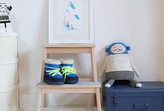 De mon côté, j'ai eu un gros coup de cœur pour Tom Haugomat et son univers poétique. Les illustrations à la vente sont tirées de son livre "Hors Pistes", qui nous entraine au cœur de la montagne. L'illustration est en bonne place dans la chambre des enfants et on aime s'imaginer ce que font les personnages, ce qu'ils se disent, ce qu'ils regardent .... et laisser notre imagination vagabonder