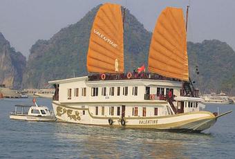 Jonque Valentine Halong Croisière sur la baie d'Halong: Cette jonque de luxe Jonque Valentine Halong a ete contruite en 2007. Jonque Valentine Halong est une tres belle jonque de bonne qualite et parfaite pour les visiteurs francophones qui recherchent une séjour balnéaire de repos en baie d’Halong, une espace privée pour la famille ou amis.