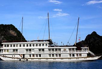 Jonque Jasmine Halong Croisière en baie d'Halong: une jonque en bois baptisée Jasmine qui vogue sur les eaux vertes de la mythique baie de Ha Long. Dès votre arrivée sur le ponton où mouille le navire, une sérénité s'empare de vous. Une ambiance zen qui vous accompagne tout le temps de votre croisière à travers l'une des plus belles baies du monde. Officiellement ouverte au 18 Décembre 2007, cette jonque de quatre étoiles la plus récente va établir la norme pour les services et aménagements sur la baie. Aménagée dans le style Indochinois des années 1930, le Jasmine Halong comprend 22 cabines spacieuses, restaurant, salon et deux Jasmine Suites spéciales avec leur propre jacuzzi et balcon pour une vue impressionnante sur la baie. Profitez de l’intimité d’un petit espace de la jonque la plus grande de la baie d’Halong. L’attention au détail et la qualité de la conception se manifestent dans chaque centimètre de cette nouvellement construction,dans la riche décoration des années 1930 en style d’Indochine en bois et dans l’ornementation excellente à travers ses chambres climatisées, un restaurant, des bars et des espaces communs.