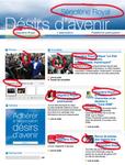 Par comparaison, le mot socialiste apparait... une fois, plus le poing et la rose tout là haut dans le bleu des nuages - qui soit-dit en passant fait très UMP, en tout cas considérablement plus que le rose, qui est totalement et dramatiquement absent de la page. Comment mieux dire que dans les désirs d'avenir de Ségolène Royal il y a assez peu de désir de socialisme et beaucoup de désir d'elle-même ?...