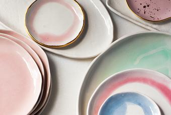 La céramique fait son retour en force sur nos tables ! Et s'il y'a bien une marque référente dans ce domaine, c'est Suite One Studio . Les céramiques de Lindsay (la créatrice) sont exclusivement réalisées à la main dans son atelier en Caroline du Nord. On y trouve uniquement des petites séries, réalisées avec amour et avec soin. La porcelaine utilisée est de très haute qualité et Lindsay crée ses propres émaux colorés, chic, inspirés par des peintures à l'aquarelle... Je dois d'ailleurs avouer que ce sont ses couleurs pastel si délicates qui m'ont fait chavirer ! C'est du haut de gamme, de l'exclusif, un vrai régal pour les yeux ! On en mangerait presque :-)