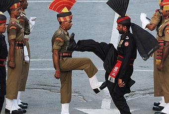 Depuis 1959, ce ballet martial mêlant cris, postures intimidantes et fair-play, et héritant grandement de la chorégraphie militaire de l'ex-colon britannique, est suivie avec excitation par les foules des deux côtés d'une frontière longue de 3000 km. Nul doute que les officiers de la Border Security Force et leurs homologues des Pakistan Rangers prennent un malin plaisir dans ce ludique combat de coqs...