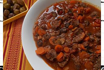 Dans un grand saladier, coupez le petit salé et la viande en petits morceaux et dénervez-la si besoin. Ajoutez les carottes, les champignons et l'oignon émincés, ainsi que les olives noires et les tomates coupées en petits morceaux. Versez le vin rouge et le verre d'armagnac, ajoutez le filet d'huile d'olive, salez et poivrez. Bien mélanger la préparation afin que tous les ingrédients puissent s'imprégner de la marinade. Filmez la préparation et réservez-la au frais toute une nuit.Le lendemain : Récupérez la viande à l'aide d'une écumoire et faites-la dorer quelques minutes dans une cocotte préalablement huilée. Saupoudrez la viande d'un nuage de farine qui vous servira à faire le liant de votre sauce plus tard. Réservez la viande dans un plat de service et procédez de la même manière pour les légumes. Lorsque vos légumes sont justes saisis, remettez la viande dans la cocotte et versez la marinade. Dans un saladier, mélangez de la farine et de l'eau et malaxez la préparation. Couvrez votre cocotte et cerclez-la avec la pâte obtenue. Mettez au four th. 5-6 (160°- 180°) pendant au moins deux heures. Plus votre daube aura mijoté, meilleure elle sera...Vous n'avez plus qu'à vous régaler en l'accompagnant de pâtes fraîches ou de pommes de terre nouvelles cuites à la vapeur. Bon appétit !