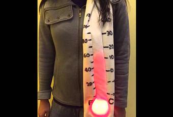 Dans la série des objets indispensables qui ne servent à rien lancés par des inventeurs un peu foufous, je demande l’écharpe thermomètre. Grâce à ses lumières LED, elle indiquera à votre entourage la température extérieur. Cela me rappelle les folles inventions du papa dans les Gremlins. Très discrète de nuit !