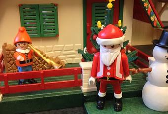 Les filles adorent jouer aux Playmobils et ce que j'aime encore plus c'est qu'elles y jouent ensemble.Même si Noël est derrière nous je vous présente aujourd'hui 'La maisonnette du père-Noël" les filles l'ont eu un peu avant Noël quand j'étais malade (j'étais tellement mal que je n'avais pas le choix que de leurs offrir un jouet pour être "tranquille")Dans ce coffret deux personnages : le père-Noël et un elfe et plein d'accessoire comme un sapin, un bonhomme de neige, un chat et plein de jouet que le barbu devra distribuer la nuit de Noël. Les filles adorent cette boîte qui est très complète. Je trouve ce chalet très bien fait avec les décorations de Noël et la neige sur le toit (en parlant de ça il neige enfin chez nous dans les Ardennes...)