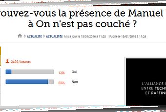 Manifestement, les français n’en veulent pas, à une écrasante majorité. Il ne faut pas tout mélanger : divertissements et politique. On voit ce que ce genre de logique donne aux états unis, avec son lot de scènes grotesques, d’une médiocrité affligeante, système perverti qui accoucha un beau jour d’un certain…Trump. Et puis, peut-être pourrait-on nous épargner en week-end la propagande pourrie de ce complexé ultra-sécuritaire et raciste de droite qui ne s’assume pas, qui va encore tenter de nous refourguer sa nauséabonde mesure de droite qu’est la déchéance de nationalité, tout comme l’infecte constitutionnalisation d ‘un éternel état d’urgence qui fait fi de nos libertés fondamentales ?
