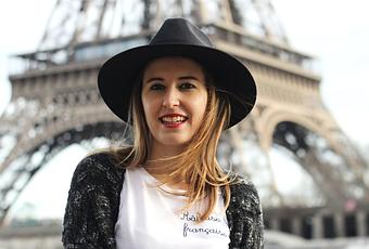 Aujourd'hui un look plein de clichés, puisque je pose avec mon tee-shirt "râleuse et française" de la marque WOOOP devant notre jolie Tour Eiffel.
