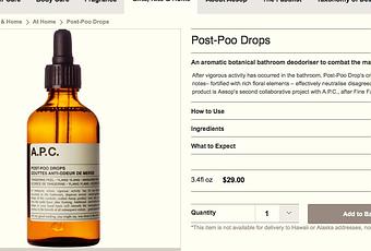 Aïe aïe aïe... les revoilà, les frappés du ciboulot, ceux qui disent caca, prout et une ribambelle de gros mots ! Et oui, c'est nous, les ignobles du Mouching ! Et bien pour une fois nous vous voulons du bien ! Et surtout à vos compagnes, enfants, co-locataires, amis, bref tous ceux qui vous entourent car, pour parler caca, popo, vous savez très bien que la cohabitation n'est pas votre meilleure amie quand vous sortez des cabinets... vous regardez le plafond en sifflotant, vous essayez de vous faire discret, mais un nuage d'effluves nauséabondes vous poursuit (surtout si vous vous êtes nourris de hot dogs pendant trois jours lors d'un salon de pêche.. et bien parlons en de cette pêche que vous avez posé et qui vous trahit ! Il y a bien entendu la célèbre allumette que l'on allume et que l'on jette dans la cuvette en espérant qu'elle ait brulée tous les gaz nauséabonds... il y a le " pschitt " d'un parfum écœurant sensé vous parfumer vos cabinets d'une douce atmosphère printanière, mais qui sent en fait le vieux taxi aux parfums industriels ! Alors voilà, pour vous sauver ! La maison APC, les pontes du bon look et du hypster des villes, toujours à la pointe de la mode (que l'on aime) mais surtout l'innovant et défricheur Jean Touitout vient à votre rescousse avec ce remède miracle en co production avec Aesop : Les Gouttes Anti-odeurs de Merde ! Une goutte et hop, vous pouvez sortir des cabèches, tête haute, comme si rien ne s'était passé ! Bien entendu pour les plus revêches il vous reste toujours la lacture de Comment Chier dans les Bois !