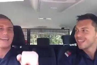 Polizisten hören Helene Fischer's 'Atemlos' im Polizeiauto