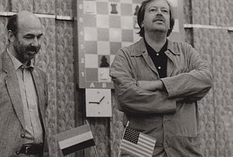 Pourriez-vous reconnaître cet homme d'affaires néerlandais, mécène et organisateur de tournois d'échecs aux côtés du GMI barbu Kavalek ?
