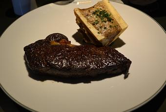 On déguste un beau faux- filet de boeuf avec son os à moelle. La cuisson est parfaite. En dessert, " les délices de notre enfance " est parfait : mousse chocolat, riz au lait, crème caramel et île flottante.