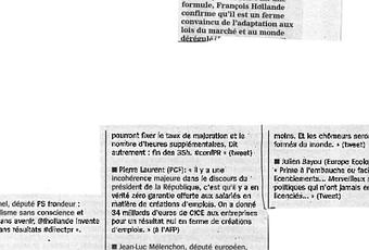 « Entre libéralisme sans conscience et immobilisme sans avenir, il y a une voie. En une formule, François Hollande confirme qu’il est un ferme convaincu de l’adaptation aux lois du marché et au monde dérégulé. »