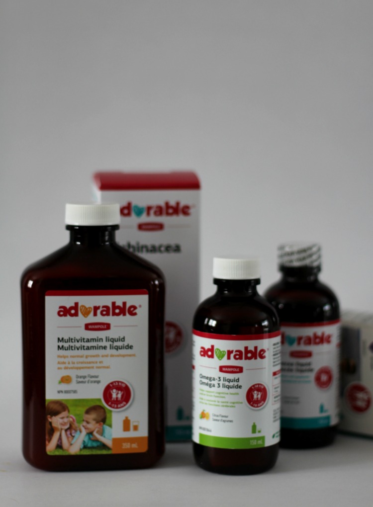 Tous les produits Adorable ont été examinés et homologués par Santé Canada. Jugés sûrs, efficaces et de haute qualité dans les conditions d’utilisation recommandées. Ils ont obtenu une License de mise en marché reconnaissable au moyen du numéro de produit naturel (NPN). Je trouve cette donnée rassurante en fait. On les retrouve en pharmacie, consultez les points de vente ICI.Depuis ce dîner, mes enfants consomment la multivitamine liquide et son ravie de recevoir leur cuillerée le matin! J'ai un coup de coeur pour l'ecchinacée liquide durant l'hiver. Mon seul bémol va aux probiotiques sous forme de sachet... Les enfants n'apprécient pas boire un grand verre d'eau additionnel au déjeuner, à ce niveau je préférerais nettement des capsules.