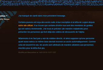 Premièrement, l’alpha est de retour, et d’après certaines rumeurs, les joueurs ayant tué Archimonde dans son plus grand mode de difficulté (mythique) ont plus de chance de recevoir un accès que les autres. Chose qui se vérifie aisément dans ma guilde, étant donné que 90% des joueurs ayant tué Archimonde mythique ont eu une clé, et 100% de ceux ne l’ayant pas tué n’en ont pas eu ! Même si blizzard a démenti la chose sur les forums :