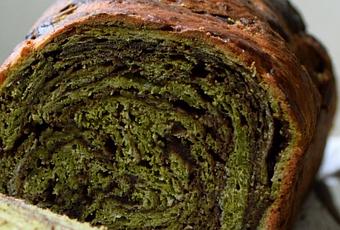 6. Préchauffer le four à 200C. Avant d’enfourner, vous pouvez si vous le souhaiter badigeonner la brioche d’un oeuf battu mélangé à un trait de lait (je ne l’ai pas fait car la chaleur de mon four aurait brûlé le dessus de la brioche). Faire 3 incisions en biais dans la brioche feuilletée, puis enfourner environ 30 minutes. Servir froide ou tiède – dans mon cas je la préfère sortant du four, car les saveurs du Matcha et de la pâte d’Azuki sont encore plus présentes -.