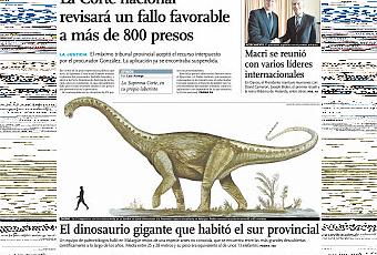 Le fossile, de la famille des sauropodes mendocins, a été identifié en 2009 dans un gisement fossile lui-même découvert en 2006. Aujourd'hui, la nouvelle atteint le grand public grâce à la traduction en espagnol pour la presse généraliste. De son côté, l'université, en pleine période de vacances d'éta, publie une interview du chercheur et c'est un véritable dossier de vulgarisation en espagnol, réalisé à partir de l'article scientifique tel qu'il a été envoyé à la revue en avril 2015, qui est disponible en ligne. La presse provinciale met la nouvelle à la une.