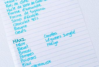 Les gens sont curieux et je me suis fait demander à quoi ressemble une liste d'épicerie ! Donc j'ai décidé à me fier à mes achats du dernier mois pour vous donner un aperçu! Notez que je me fis également aux circulaires afin de découvrir les meilleurs offres en matière de produits bios et bon pour notre santé. Et c'est toujours très drôle de regarder les petites familles autour de soit qui ont décidé de faire des choix moins santé (c'est leur choix) qui regarde notre panier.