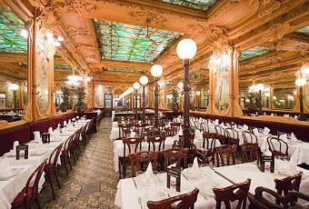 C'est la Brasserie Julien et il se trouve que j'y ai passé la soirée, à cette même table, face à l'un des tableaux inspiré de Mucha, où a été tournée la scène où Chocolat (Omar Sy) se régale d'une souris d'agneau. Ce plat n'est pas à la carte mais je parierais qu'il y sera bientôt, car c'est une recette typique d'une brasserie.