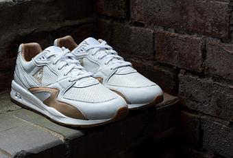 En fin d’année 2015 était sortie la LCS R800 “Artisan” née de l’union entre Le Coq Sportif et le shop Anglais Footpatrol. Issue du même programme, la Le Coq Sportif LCS R800 MIF (Made In France) est une déclinaison exclusive, toujours produite dans les ateliers Cléon près de Cholet. Leur savoir faire unique en matière de fabrication artisanale et leurs choix des matériaux en font un modèle haut de gamme. La LCS R800 MIF est dotée de cuir pleine fleur de couleur blanc associé à une couleur “fauve” sur le renfort latéral. La toebox est entièrement perforée ainsi que le panel du milieu qui dispose du logo estampillé. La doublure intérieure est également en cuir et sa semelle extérieure en gomme naturelle. La paire sera proposée avec des embauchoirs dans un coffret en bois contenant une crème de cirage et sa brosse d’entretien.