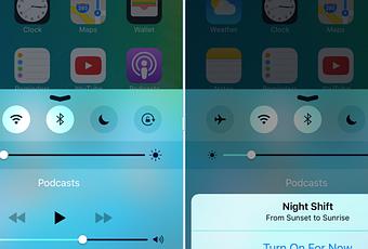 Comme vous pouvez le voir sur la capture du haut, le mode '' Night Shift '' (mode nuit) peut désormais s'activer depuis le Centre de Contrôle.