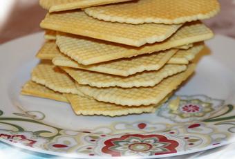 Ces gaufrettes sont assez légères grâce aux blancs d’œufs montés en blanc et incorporés à la pâte. Il n’y a pas non plus trop de beurre.