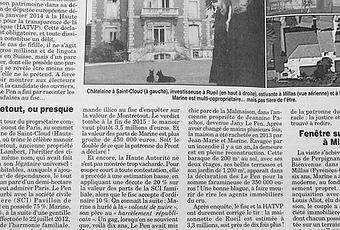 Où l’on apprend que celle qui se fait passer pour la championne toutes catégories des ouvriers, des pauvres et des sans-voix est la digne héritière de son père, et pas seulement idéologiquement… Madame de Montretout ne nous dit pas tout, la transparence a des limites… Surtout vis à vis du fisc. Décidément, au FN, les dirigeants ont un sens particulier des affaires, et le parti les sert si bien… sur lequel ils se sucrent si avidement, en bons libéraux sans scrupules qu’ils sont, avec la complicité active des gogos qui croient encore en ce genre d’idées néfastes pour notre société. Malgré l’évidente supercherie que constitue ce parti clanique où le népotisme règne en monarque absolu.