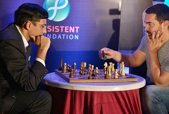 Pourriez-vous reconnaître cette grande star du cinéma indien qui joue aux échecs avec les Blancs contre Vishy Anand ?