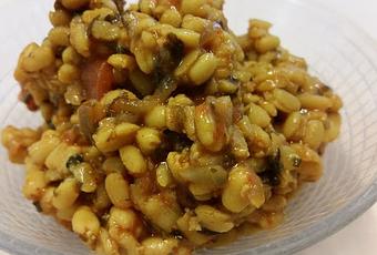 Sabut urad dal – Whole urad gram –Vigna Mungo Ingredients ½ cup (125ml) whole skinned urad dal 1 pinch of asafoetida ½ tsp turmeric 1 tsp chilli or paprika 1 tsp garam masala 1 tsp amchur (dry mango powder) or 1 tbsp of tamarind pulp 1 tomato (I used a tinned tomato since we’re out of season) 1 green chilli, chopped 1 onion chop ½ a bunch of coriander leaves, chopped ½ tsp of sugar Salt to taste Method Wash and soak the lentils for at least 6 hours (overnight for me). Mix all ingredients (except salt) with 1 ½ c (375ml) of water in a pot. Cover, bring to a boil and simmer for around half an hour, adding water if necessary. I cooked it in a pressure cooker for 7 minutes after full pressure. Salt and serve with rice or as a side to meat or fish.