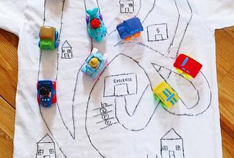 Vous enfilez le t-shirt, vous vous couchez à plat ventre et vous laissez l'enfant (ou les enfants) faire des broom, vroom, et jouer sur votre dos.