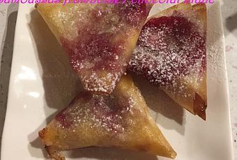Pour associer le dessert et le plat, j'ai utilisé le reste de mes feuilles de brick pour faire ses samoussas très simples mais très bons :)
