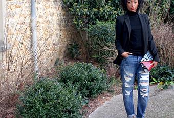 Mon jean boyfriend vient de chez Mango, il est très bien coupé, son délavage est parfait, je l'adore ! Il offre une dégaine cool et féminine, car il se referme progressivement le long de la jambe.