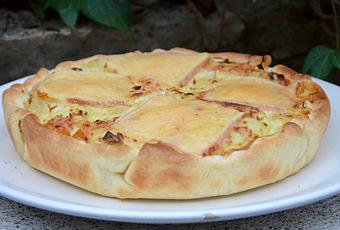 Une quiche quiche complète pour le repas du soir, pratique pour utiliser les restes de fromage d'une raclette!