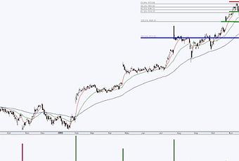 Les nouvelles économiques qui sont sorties après la fermeture des marchés ont fait chuter le titre en «After Market» de 85$ dollars, ce qui va ramener la courbe des prix d’Amazon à proximité de son creux des 547$ dollars demain à l’ouverture. Alors, la première cible de Fibonacci 161.8% situé à 533$ dollars risque fortement d’être rejoint et même dépassé.