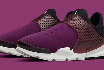 Bien sûr Nike n’est pas à son premier coup d’essai avec le Tech Fleece sur le footwear puisque la Air Presto en a déjà bénéficié ainsi que la Air Huarache et autres Roshe One. Certaines images ont parcouru la toile depuis des semaines mais il semblerait que cette Sock Dart arrive en boutique plus vite que prévu. L’empeigne est bicolore, “Mulberry” sur la toebox perforée, noire sur la partie autour de la cheville, elle est complétée par une midsole blanche.