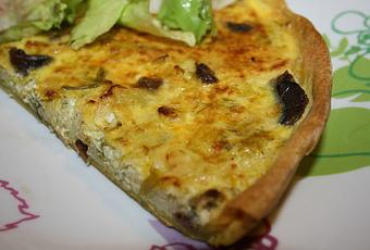 Voici une quiche que j’ai réalisée en m’inspirant d’une entrée dégustée au restaurant pendant mes vacances de Noël. Une très bonne adresse si vous passez par Cap Breton, mais il faut réserver ! J’y ai testé une quiche à base de poireaux et de gésiers confits. J’ai donc ramené une boîte de gésier dans mes valises et tenté une recette similaire. J’ai remplacé la pâte feuilletée que j’avais dégusté par une pâte brisée allégée maison (de chez Popote et Casseroles) et parfumée au curcuma. Pour la garniture, gésiers et poireaux cuits préalablement et un appareil à quiche ont fait l’affaire. Je me suis régalée avec cette quiche qui a embaumé toute la maison.