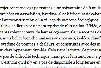 Valls nous y a malheureusement habitué, quand il était ministre de l’intérieur, tout comme maintenant qu’il est premier ministre, lui qui se vantait de faire mieux que son prédécesseur en matière d’expulsion de roms, oubliant probablement qu’ils sont citoyens européens… Et oui, c’ est encore une histoire de démantèlement d’un camp de roms, cette fois porte de Clignancourt. Une fois de plus, c’est encore sur le territoire d’un élu dit « de gauche », le 18ème arrondissement de Paris, dont le maire est Eric Lejoindre (PS). Dans ce camp, promis au démantèlement par une décision de justice malgré l’absence de solutions de relogement – comme dab – vivent plus de 300 personnes. Le terrain appartient à SNCF Réseau. La mairie du 18ème s’abrite derrière la dangerosité du lieu pour se donner bonne conscience… Sauf que cette fois, ça risque de ne pas suffire. J’apprends en effet avec bonheur qu’un architecte solidaire un peu moins con que d’autres, Olivier Leclercq, a imaginé avec les habitants [de ce] campement du nord de Paris, expulsables à partir de mercredi, la construction d’un village de maisons écologiques, à ses yeux plus efficace pour l’insertion à long terme. Le contenu de son projet est séduisant, et je l’admire d’autant plus qu’il s’inscrit dans une démarche participative, en accord avec les habitants de ce bidonville :