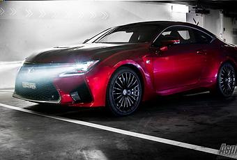 Extérieurement, il ne fait aucun doute que le coupé RC F annonce la couleur. Sa proue au design très osé et ses lignes acérées ne laissent personne indifférent, avec également pour avantage de conférer à l'auto un Cx remarquable de 0.33. L'arrière quant à lui est coiffé d'un aileron actif qui se déploie automatiquement à plus de 80 km/h. En position rétractée, celui-ci est invisible car parfaitement intégré à la malle de coffre.