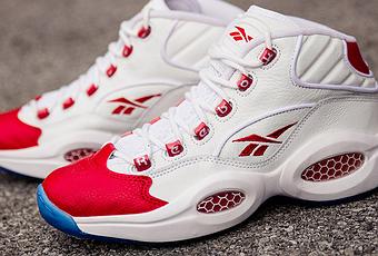 Une excellente nouvelle pour les fans d’Allen Iverson et autres amateurs de B-ball, la Reebok Question Mid OG est de retour à l’occasion de son 20ème anniversaire. Quoi de mieux pour commémorer l’arrivée en 1996 de Iverson chez les Sixers de Philadelphie que de rééditer la Reebok Question dans son coloris OG. On retrouve son upper en cuir blanc dominé par la présence d’une toebox en cuir rouge, matière que l’on retrouve également sur le talon. Ensuite différents accents rouges viennent agrémenter le rendu global, comme le logo Reebok latéral et les oeillets affichant chacun une lettre formant le nom de la marque. La midsole blanche se distingue avec son système d’amortie Héxalite rouge visible sur le profil et l’utilisation d’une outsole Icy Blue. Ce modèle mythique a été décliné en de nombreux coloris celui-ci reste certainement le plus marquant.